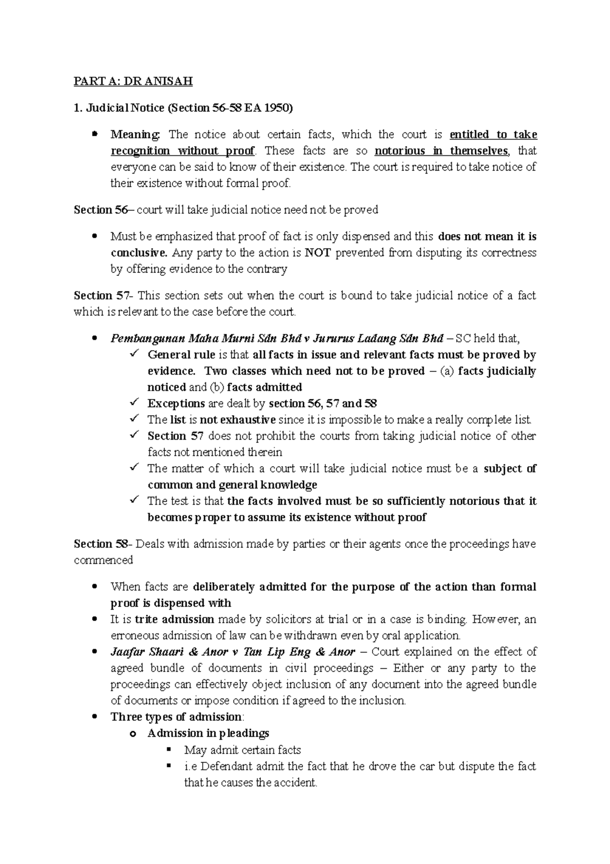 Express Study Notes Super Final Part A Dr Anisah 1 Judicial Notice Section Ea 1950 Meaning Studocu